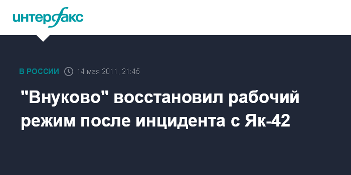"Внуково" восстановил рабочий режим после инцидента с Як-42