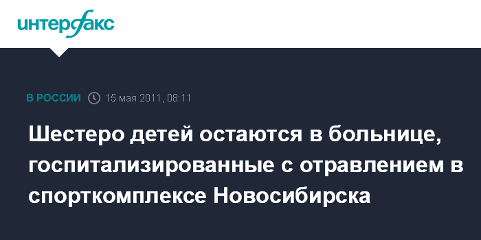 Новосибирск. 15 мая. ИНТЕРФАКС-СИБИРЬ - Из первой детской клинической больницы Новосибирска в воскресенье выписано большинство детей из 14, госпитализированных накануне с отравлением после занятий в секции фигурного катания.