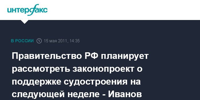 Правительство РФ планирует рассмотреть законопроект о поддержке судостроения на следующей неделе - Иванов