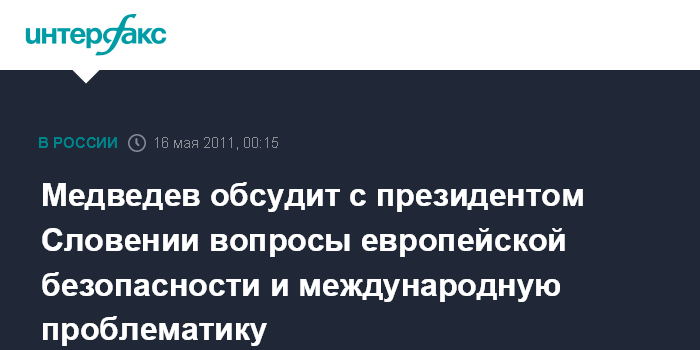 Медведев обсудит с президентом Словении вопросы европейской безопасности и международную проблематику