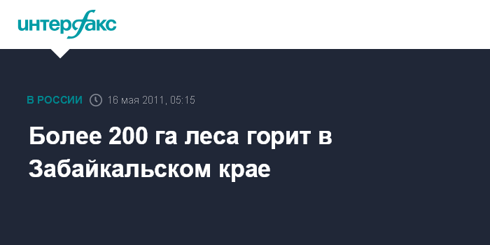 Чита. 16 мая. ИНТЕРФАКС-СИБИРЬ - В Забайкальском крае полыхает лес на 215,7 га, 6 очагов на 194 га локализованы.