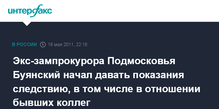 Москва.16 мая. ИНТЕРФАКС - Бывший заместитель прокурора Московской области Станислав Буянский заявил, что дал показания по уголовному делу, в рамках которого в получении взяток обвиняются отстраненные от должности высокопоставленные работники подмосковной прокуратуры. Об этом сам С.Буянский сообщил "Интерфаксу" в понедельник.