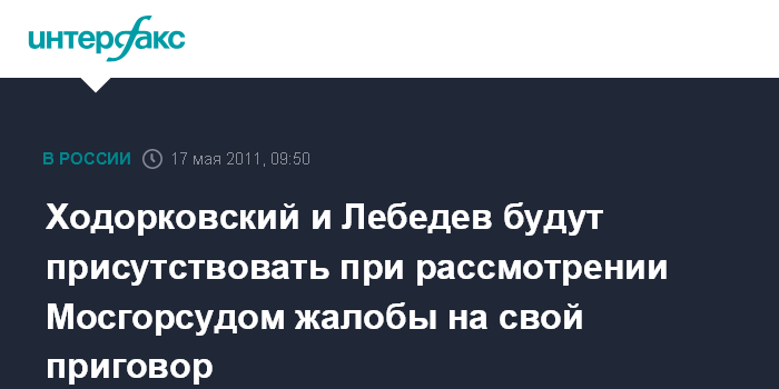 Ходорковский и Лебедев будут присутствовать при рассмотрении Мосгорсудом жалобы на свой приговор