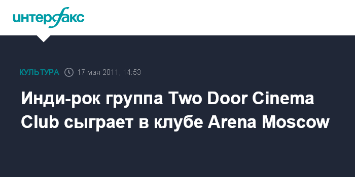 Москва. 17 мая. INTERFAX.RU - Двадцать первого мая в клубе Arena Moscow состоится концерт инди-рок группы Two Door Cinema Club.