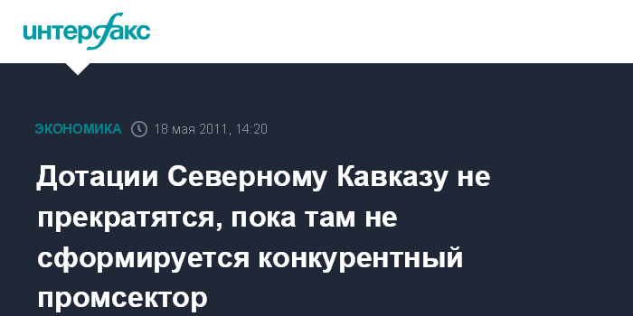 Сколково. 18 мая. INTERFAX.RU - Президент РФ Дмитрий Медведев заявил, что дотирование Северного Кавказа сохранится до тех пор, пока в регионе не заработает конкурентная среда.