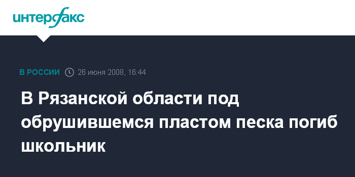 Москва. 26 июня. INTERFAX.RU - В заброшенном песчаном карьере недалеко от деревни Дудкино Рязанского района погиб 14-летний школьник, сообщили "Интерфаксу" в пресс-службе УВД по региону.