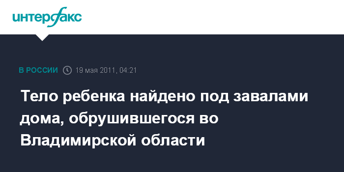 Владимир. 19 мая. ИНТЕРФАКС - Тело 6-летней девочки извлечено из-под обломков частично обрушившегося жилого дома в городе Струнино Владимирской области, сообщила в четверг "Интерфаксу" пресс-секретарь ГУ МЧС РФ по региону Анна Минина.
