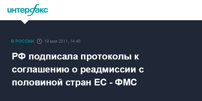 РФ подписала протоколы к соглашению о реадмиссии с половиной стран ЕС - ФМС