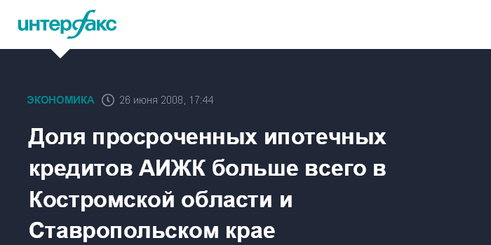 Доля просроченных ипотечных кредитов АИЖК больше всего в Костромской области и Ставропольском крае