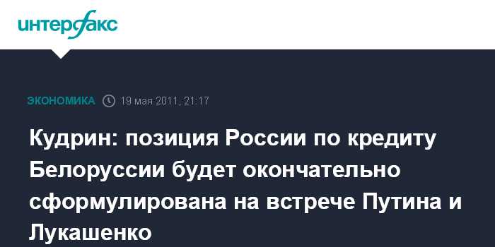 Минск. 19 мая. INTERFAX.RU - Вице-премьер Алексей Кудрин рассчитывает, что российская позиция по предоставлению Белоруссии кредита из Антикризисного фонда ЕврАзЭС будет окончательно сформулирована на предстоящей в четверг вечером в Минске встрече премьера РФ Владимира Путина с президентом Белоруссии Лукашенко.