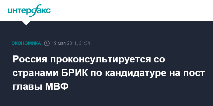 Россия проконсультируется со странами БРИК по кандидатуре на пост главы МВФ