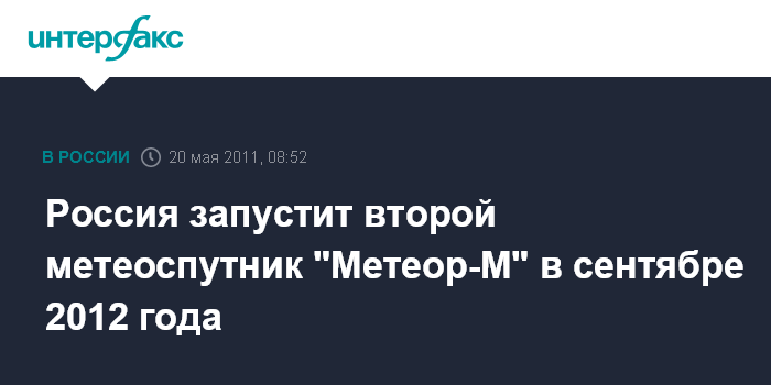 Москва. 20 мая. INTERFAX.RU - Запуск российского метеорологического спутника "Метеор-М" номер два планируется осенью следующего года, сообщает Роскосмос.