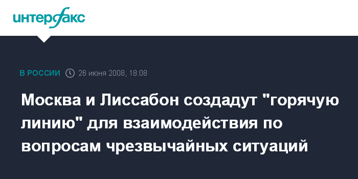 Москва. 26 июня. INTERFAX.RU - Между Португалией и Россией будет создана "горячая линия" по обмену информацией о чрезвычайных ситуациях.