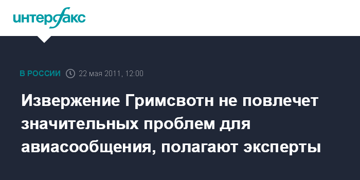 Копенгаген. 22 мая. INTERFAX.RU - Несмотря на значительную силу извержения исландского вулкана Гримсвотн, местные вулканологи и авиавласти полагают, что оно не повлечет за собой таких проблем, которые произошли в прошлом году во время извержения вулкана Эяфьятлайокудль.
