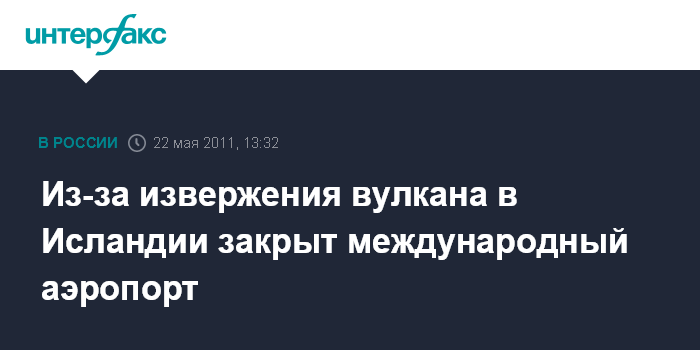 Из-за извержения вулкана в Исландии закрыт международный аэропорт