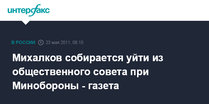 Москва. 23 мая. ИНТЕРФАКС - Известный кинорежиссер Никита Михалков направил письмо в Минобороны РФ с просьбой освободить его от должности председателя Общественного совета при министерстве, сообщает газета "Комсомольская правда" в понедельник.