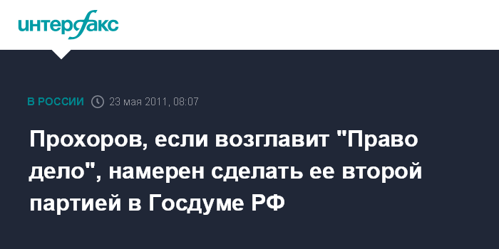 Прохоров, если возглавит "Право дело", намерен сделать ее второй партией в Госдуме РФ