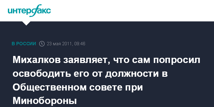 Михалков заявляет, что сам попросил освободить его от должности в Общественном совете при Минобороны