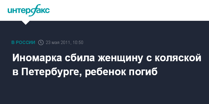 Санкт-Петербург. 23 мая. INTERFAX.RU - В Красносельском районе Петербурга иномарка сбила женщину с годовалым ребенком, сообщили "Интерфаксу" в понедельник в пресс-службе городской ГИБДД.