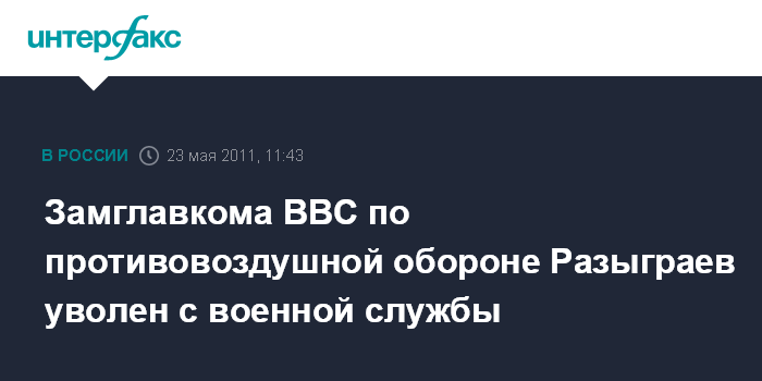 Замглавкома ВВС по противовоздушной обороне Разыграев уволен с военной службы
