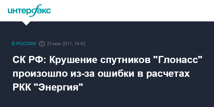 Москва. 23 мая. INTERFAX.RU - Причиной аварии спутников "ГЛОНАСС" в декабре прошлого года стало превышение массы окислителя, подаваемой в разгонный блок, сообщил "Интерфаксу" официальный представитель СК РФ Владимир Маркин.