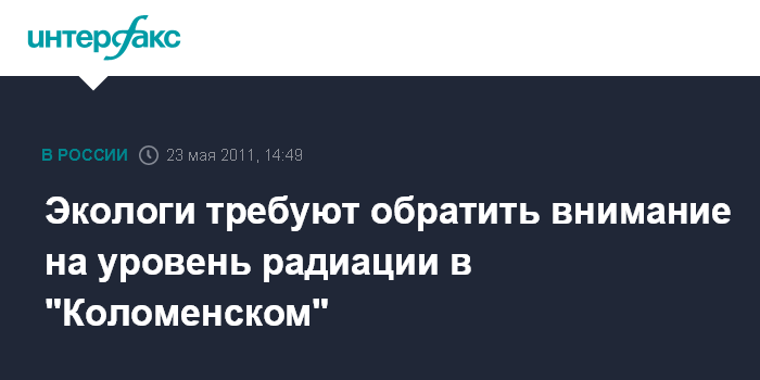 Москва. 23 мая. INTERFAX.RU - Экологи призывают власти Москвы выставить знаки предупреждения о радиационной опасности недалеко от музея-заповедника "Коломенское", где зафиксировано превышение радиационного фона.