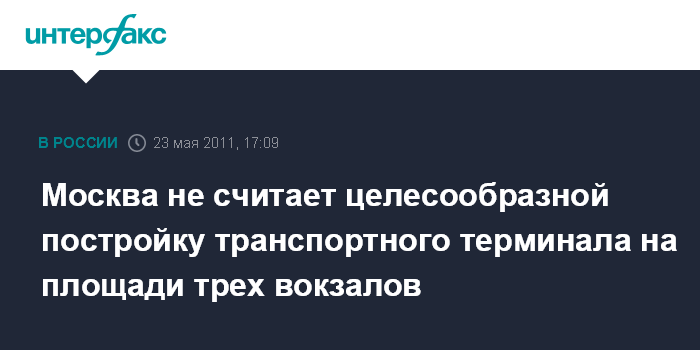 Москва не считает целесообразной постройку транспортного терминала на площади трех вокзалов