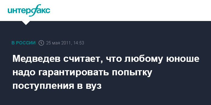 Медведев считает, что любому юноше надо гарантировать попытку поступления в вуз