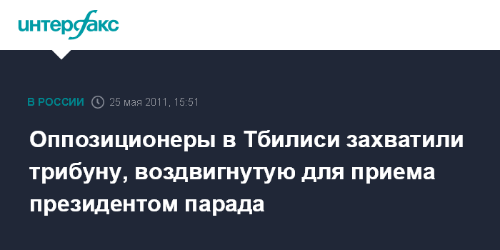 Тбилиси. 25 мая. INTERFAX.RU - Колонна оппозиционеров заняла в Тбилиси трибуну перед зданием парламента, подготовленную для приема военного парада 26 мая Верховным главнокомандующим, президентом Михаилом Саакашвили.