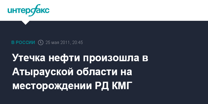 Атырау. 25 мая. INTERFAX.RU - Утечка нефти произошла из устья скважины на месторождении имени С.Балгимбаева в Атырауской области Казахстана, разрабатываемом нефтегазодобывающим управлением (НГДУ) "ЖайыкМунайГаз".