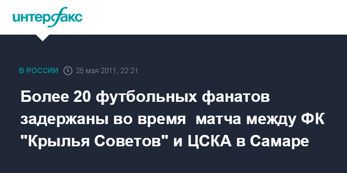 Более 20 футбольных фанатов задержаны во время матча между ФК "Крылья Советов" и ЦСКА в Самаре