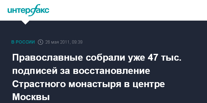 Православные собрали уже 47 тыс. подписей за восстановление Страстного монастыря в центре Москвы