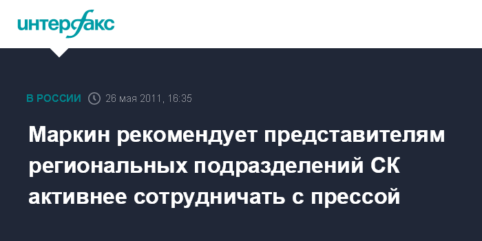 Санкт-Петербург. 26 мая. INTERFAX.RU – Глава управления взаимодействия со СМИ СК РФ генерал-майор юстиции Владимир Маркин призвал официальных представителей региональных подразделений ведомства активнее сотрудничать со средствами массовой информации.
