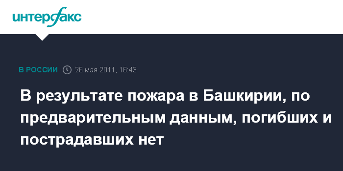 В результате пожара в Башкирии, по предварительным данным, погибших и пострадавших нет