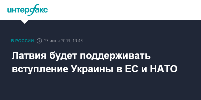 Москва. 27 июня. INTERFAX.RU - Латвия будет поддерживать вступление Украины в НАТО и Европейский Союз, заявляет президент Латвии Валдис Затлерс.