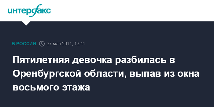 Оренбург. 27 мая. INTERFAX.RU - В Орске Оренбургской области проводится доследственная проверка по факту гибели 5-летнего ребенка, выпавшего из окна восьмого этажа.