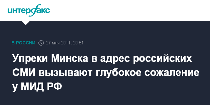 Упреки Минска в адрес российских СМИ вызывают глубокое сожаление у МИД РФ