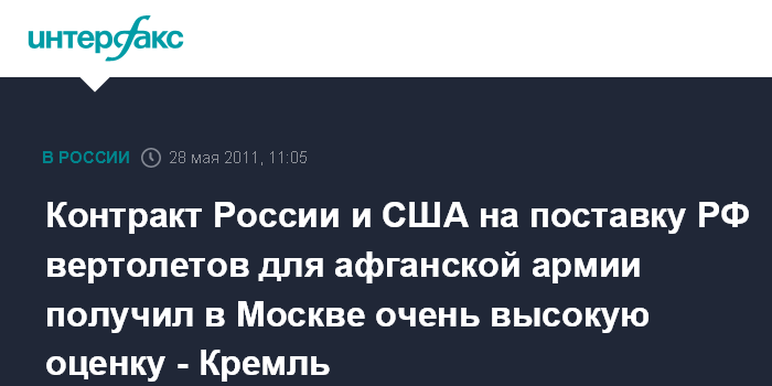 Контракт России и США на поставку РФ вертолетов для афганской армии получил в Москве очень высокую оценку - Кремль