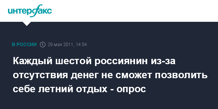 Каждый шестой россиянин из-за отсутствия денег не сможет позволить себе летний отдых - опрос