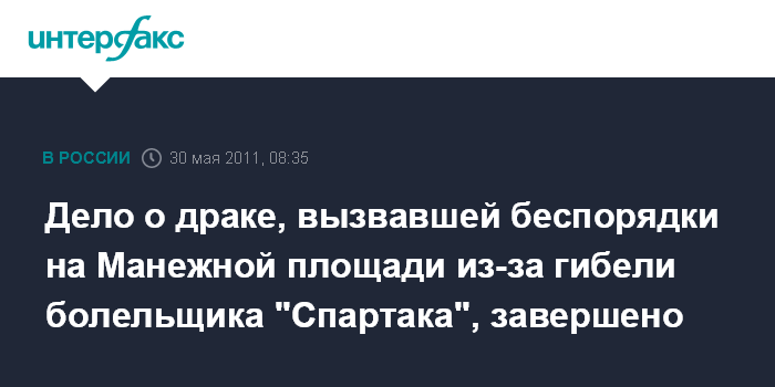 Дело о драке, вызвавшей беспорядки на Манежной площади из-за гибели болельщика "Спартака", завершено