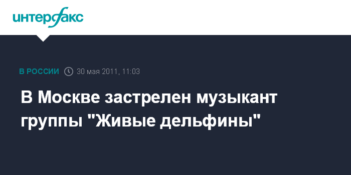 Москва. 30 мая. INTERFAX.RU - Бас-гитарист чеченской рок-группы "Живые дельфины" (бывшие "Мертвые дельфины") Александр Помараев убит на севере Москвы, сообщил "Интерфаксу" источник в правоохранительных органах в понедельник.