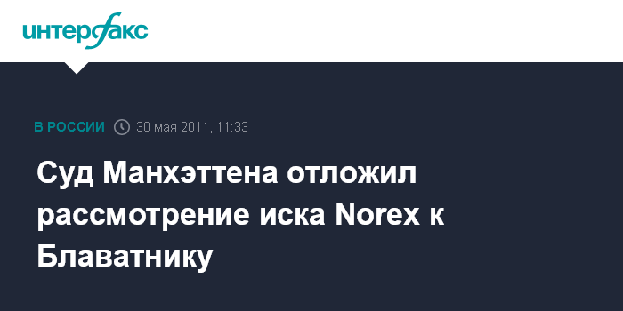 Суд Манхэттена отложил рассмотрение иска Norex к Блаватнику