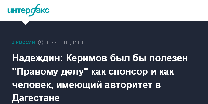 "Я не могу дать личных подтверждений информации, что Прохоров позвал Керимова в "Правое дело", но, на мой взгляд, это было бы вполне логично и обоснованно", - сказал Надеждин в понедельник "Интерфаксу".