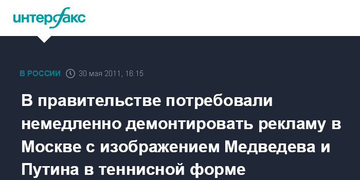 В правительстве потребовали немедленно демонтировать рекламу в Москве с изображением Медведева и Путина в теннисной форме