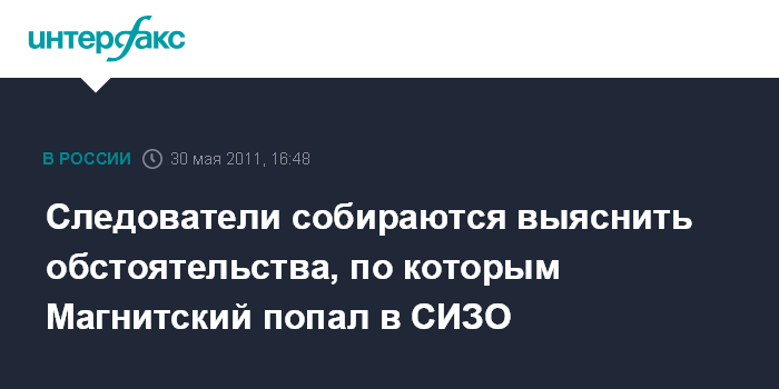 Следователи собираются выяснить обстоятельства, по которым Магнитский попал в СИЗО