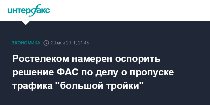 Ростелеком намерен оспорить решение ФАС по делу о пропуске трафика "большой тройки"