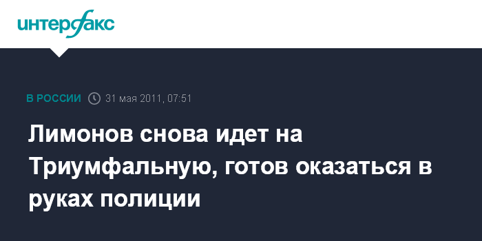 Лимонов снова идет на Триумфальную, готов оказаться в руках полиции