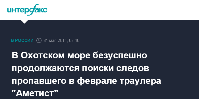 "В настоящее время для продолжения поисковых работ судно переходит в район последнего позиционирования "Аметиста", - сообщает пресс-служба администрации Камчатского края со ссылкой на министра специальных программ и по делам казачества региона Сергея Хабарова.
