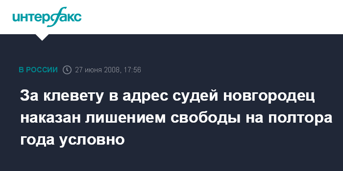 Москва. 27 июня. INTERFAX.RU - В Hовгородской области вынесен приговор местному жителю, распространившему сведения клеветнического характера в отношении судей.