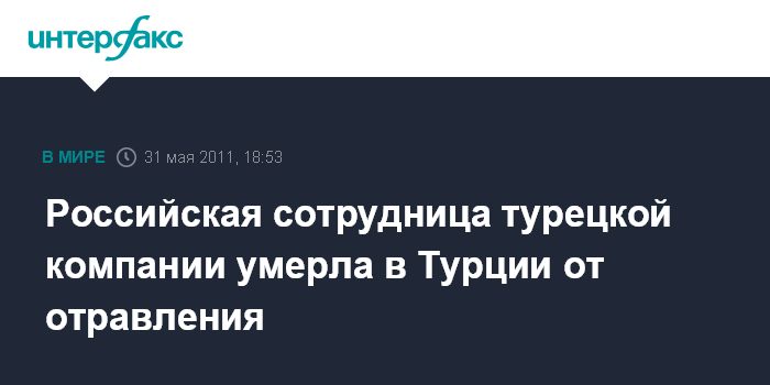 Российская сотрудница турецкой компании умерла в Турции от отравления